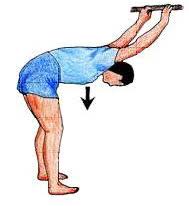 8. Estiramiento de dorsales: En este estiramiento deberemos agarrar con las dos manos una barra. A continuación deberemos inclinar el cuerpo hacia abajo.