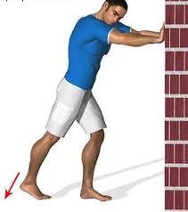 3. Estiramiento de gemelos: En este estiramiento deberemos hacer presión hacia una pared y con el pie seleccionado estirarlo hacia atrás, y con el otro pie delante.
